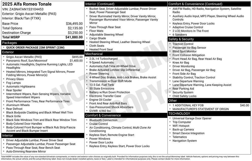 Whether you're seeking a stylish daily commuter or a versatile weekend warrior, the 2025 Alfa Romeo Tonale SPRINT is the perfect blend of Italian design, advanced technology, and exceptional performance. We invite you to experience the thrill of driving this remarkable crossover for yourself. Contact us today to schedule a test drive and discover the true essence of the Tonale SPRINT.