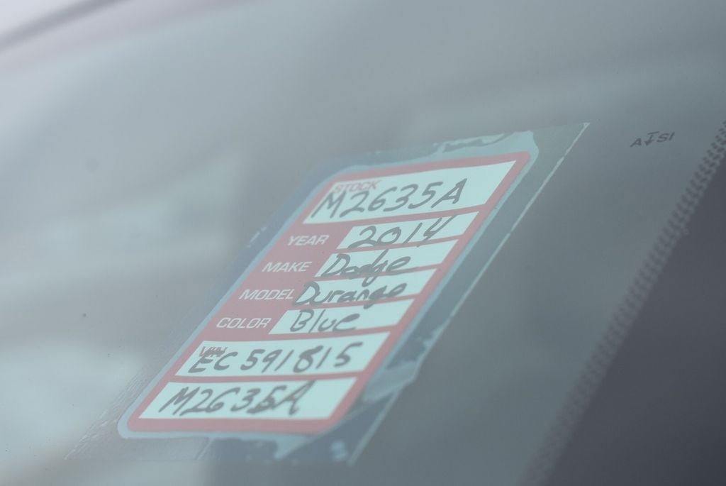 Take on every season in this 2014 Dodge Durango SXT AWD available now at Palmen Kia and Palmen Motors in Kenosha, WI. Finished in eye-catching True Blue Pearlcoat with Black interior, this versatile 3-row SUV delivers confident performance with a V6 engine and all-wheel drive, achieving up to 24 MPG highway.