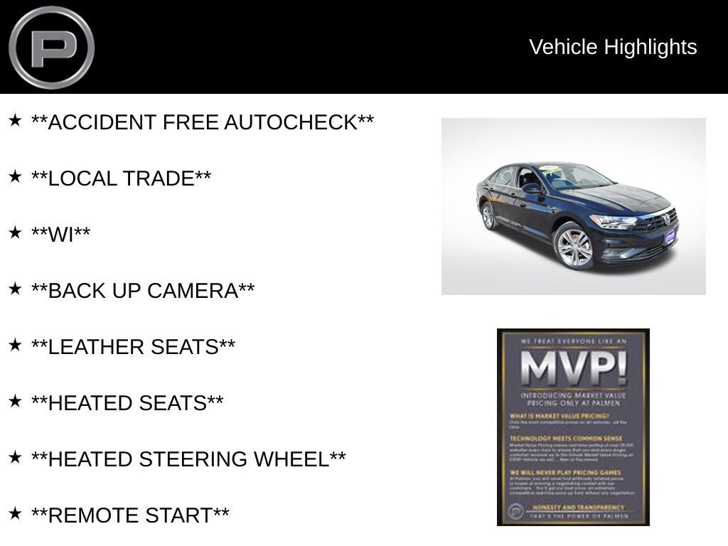 We make upgrading simple with trade-ins welcome and financing available to fit your budget. If you’re searching for a fuel-efficient used Volkswagen Jetta R-Line in Kenosha, this one stands out. Visit Palmen Kia or Palmen Motors in Kenosha, WI today to schedule your test drive.