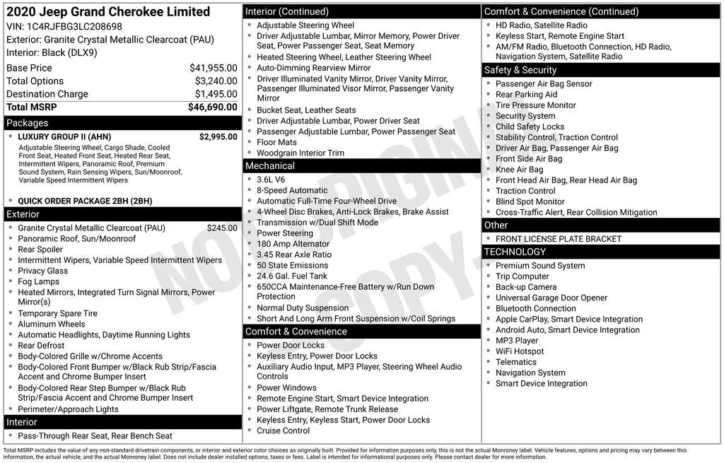 Drive home in this 2020 Jeep Grand Cherokee Limited 4x4 available now at Palmen Kia and Palmen Motors in Kenosha, WI. Finished in stunning Granite Crystal Metallic Clearcoat with a refined Black interior, this Grand Cherokee delivers the perfect blend of capability, comfort, and style for Wisconsin and Illinois drivers alike.