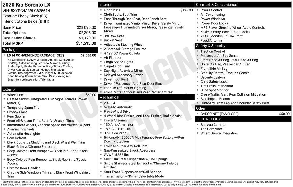 Drive home value, space, and versatility in this 2020 Kia Sorento LX FWD, now available at Palmen Kia and Palmen Motors in Kenosha, Wisconsin. Finished in sleek Ebony Black with a Stone Beige interior, this midsize SUV is perfect for families and commuters alike.