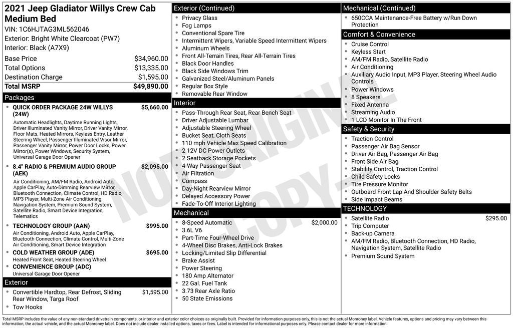 Turn heads on and off the road in this 2021 Jeep Gladiator Willys 4x4, available now at Palmen Motors and Palmen Kia in Kenosha, Wisconsin. Finished in Bright White with a rugged black interior, this Gladiator delivers legendary Jeep capability with everyday comfort and utility.