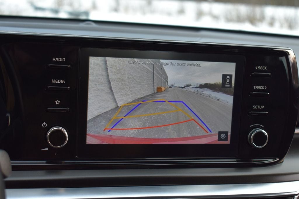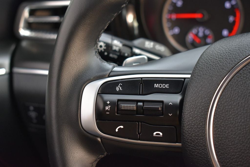 Sporty performance meets modern tech in this stunning 2021 Kia K5 GT finished in Passion Red Tintcoat . Powered by a 2.5L Turbo GDI engine with an 8-speed dual-clutch transmission, the K5 GT delivers thrilling acceleration while still achieving an efficient 24 MPG city / 32 MPG highway . The sport-tuned suspension, paddle shifters, and bold GT styling make every drive exciting.
