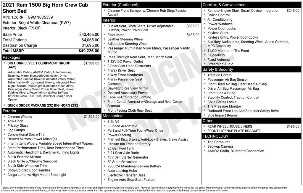 - Vehicle Name: Ram 1500