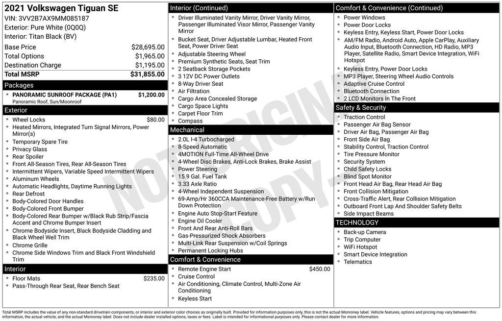 2021 Volkswagen Tiguan 2.0T SE