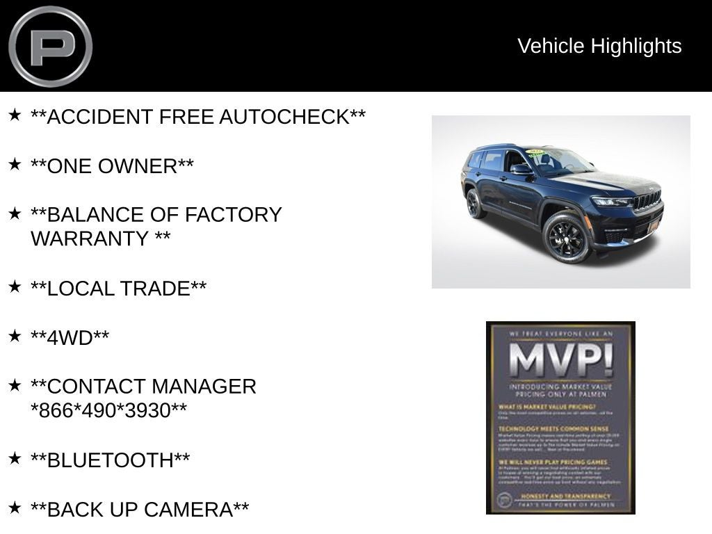 Enjoy refined comfort, advanced technology, and legendary capability in this 2022 Jeep Grand Cherokee L Limited 4x4, now available at Palmen Kia and Palmen Motors in Kenosha, Wisconsin. Finished in elegant Diamond Black Crystal Pearlcoat with a sleek Global Black interior, this three-row SUV is designed for families and drivers who want premium versatility.