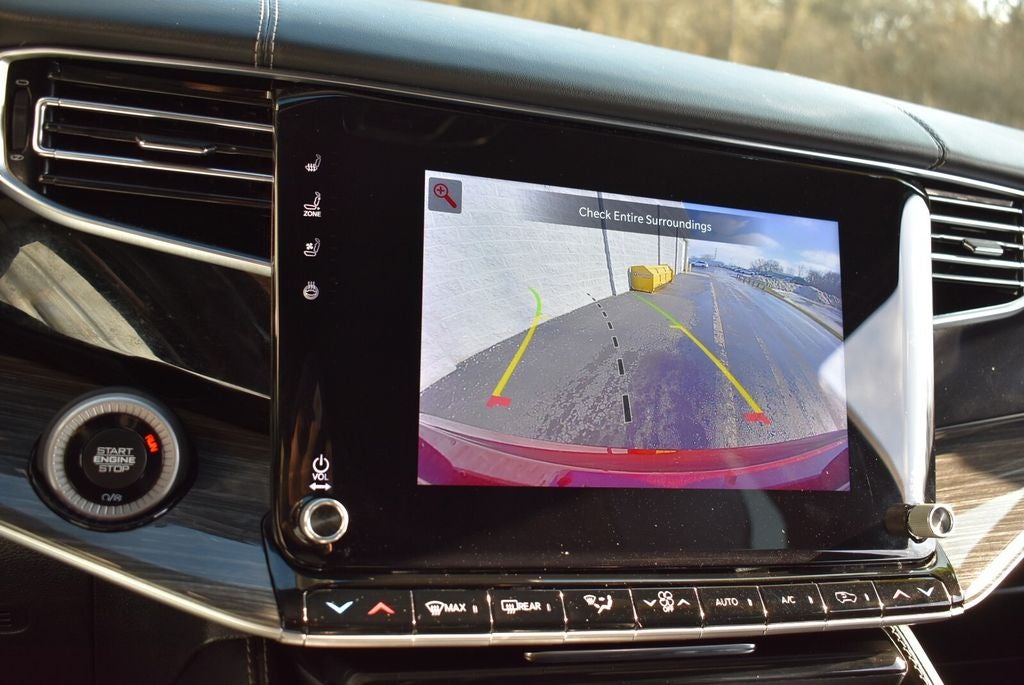Advanced safety and driver-assist features include front and rear ParkSense parking sensors, collision mitigation systems, blind-spot monitoring, and curtain airbags for all three rows, providing peace of mind on every drive.