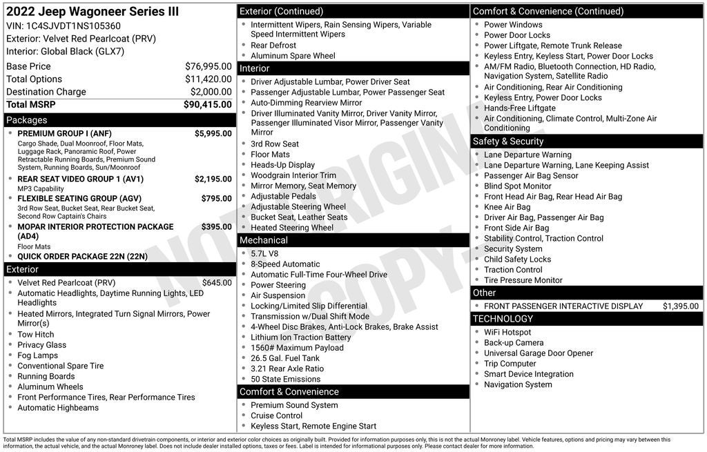 Finished in striking Velvet Red Pearlcoat with a Global Black leather interior, this Series III model is loaded with high-end features including a head-up display, Uconnect 5 NAV with 10.1-inch touchscreen, front passenger interactive display, rear seat entertainment system, and the Premium Group I package. Enjoy comfort for the whole family with heated power-reclining leather seating, flexible seating group, power adjustable pedals, and 4-corner auto-leveling air suspension.