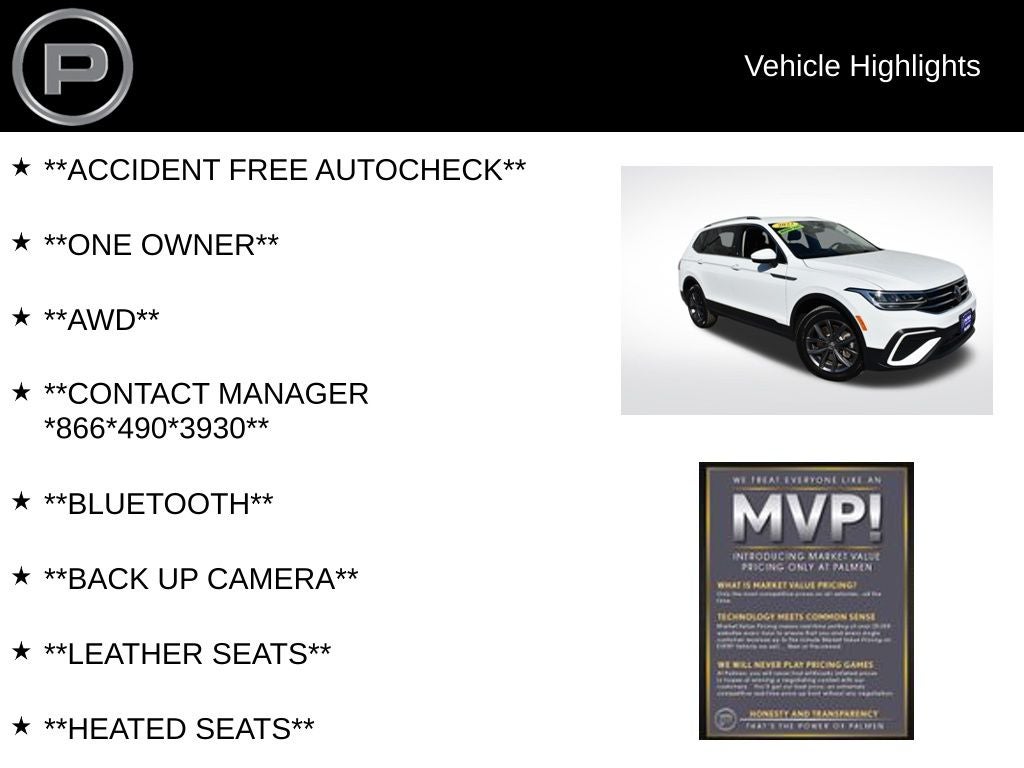 Visit Palmen Kia / Palmen Motors in Kenosha, Wisconsin today to test drive this Volkswagen Tiguan SE AWD and experience comfort, safety, and value in a quality used SUV.