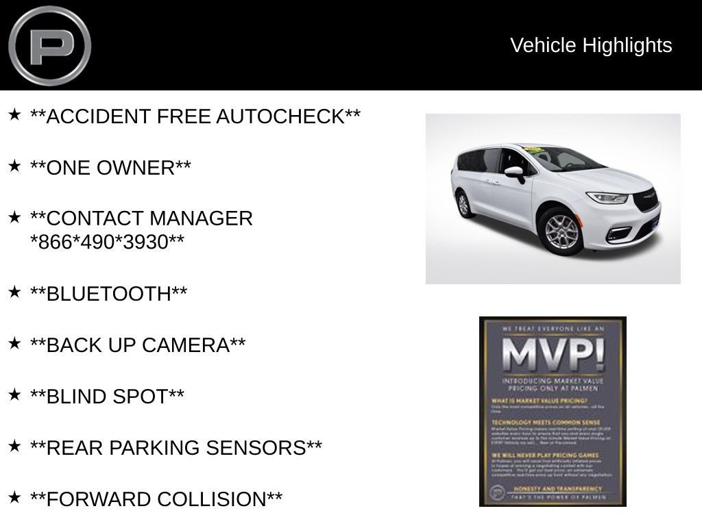 Travel in comfort, space, and confidence with this 2023 Chrysler Pacifica Touring FWD, available now at Palmen Kia and Palmen Motors in Kenosha, Wisconsin. Powered by a strong and reliable 3.6L V6 engine paired with a smooth 9-speed automatic transmission, this Pacifica delivers excellent performance and efficiency with an estimated 19 MPG city / 28 MPG highway, making it an ideal family vehicle.