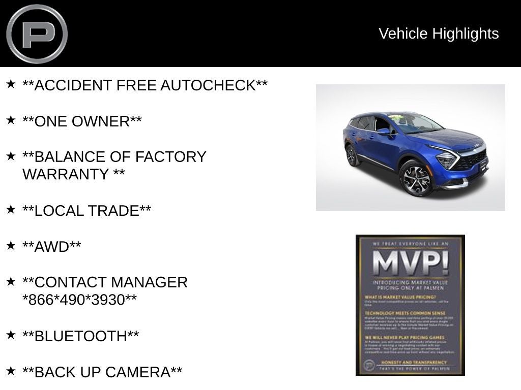 Stand out in style and confidence with this 2024 Kia Sportage EX AWD, now available at Palmen Kia and Palmen Motors in Kenosha, Wisconsin. Finished in stunning Sapphire Blue with a black leatherette interior, this Sportage blends bold design with all-weather capability.