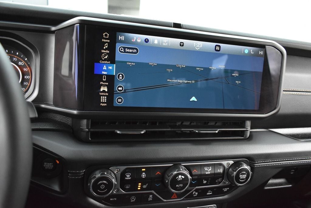 Powered by a fuel-efficient turbocharged 4-cylinder engine and an 8-speed automatic transmission, this Wrangler Sahara offers confident 4x4 performance for Wisconsin winters and Illinois adventures. Features include heated front seats, adaptive cruise control, backup camera, forward collision warning, Alpine premium audio, removable hard top, all-terrain tires, and trailer tow package. With four doors and flexible cargo space, it’s perfect for daily driving, weekend trips, and outdoor fun.