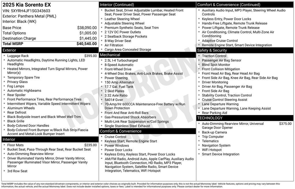 - Vehicle Name: Kia Sorento